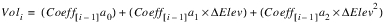 Sediment Functions) to generate a series of coefficient arrays. These coefficient values are then used in the following polynomial equation to calculate incremental volumes at given elevation points: