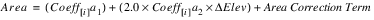The area correction term is calculated within this function based on the elevation increment size and the coefficient values.