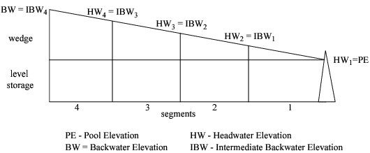 The computed Lambda Points are stored in the Backwater Lambda Coefficients (BLC) table. The first columns of the table correspond to the Coefficients from the BLLPP table plus additional columns for time lagged Inflows and Outflows. The number of Inflow and Outflow columns is determined by the number of impulse response coefficients in the Profile Coeff Table. The remaining columns in the BLC table are the calculated Optimization parameters: Storage, Backwater Elevation, and Intermediate Backwater Elevations for each reservoir segment. Every row in the BLC table represents a valid lambda point. There is a row for each possible combination of Lambda Coefficients, including the lagged flows. The number of lambda point rows grows very quickly when multiple time lag columns compound the combinations. Since an excessive number of lambda points is unnecessary and affects performance, the number of lambda points is limited to 1,000.