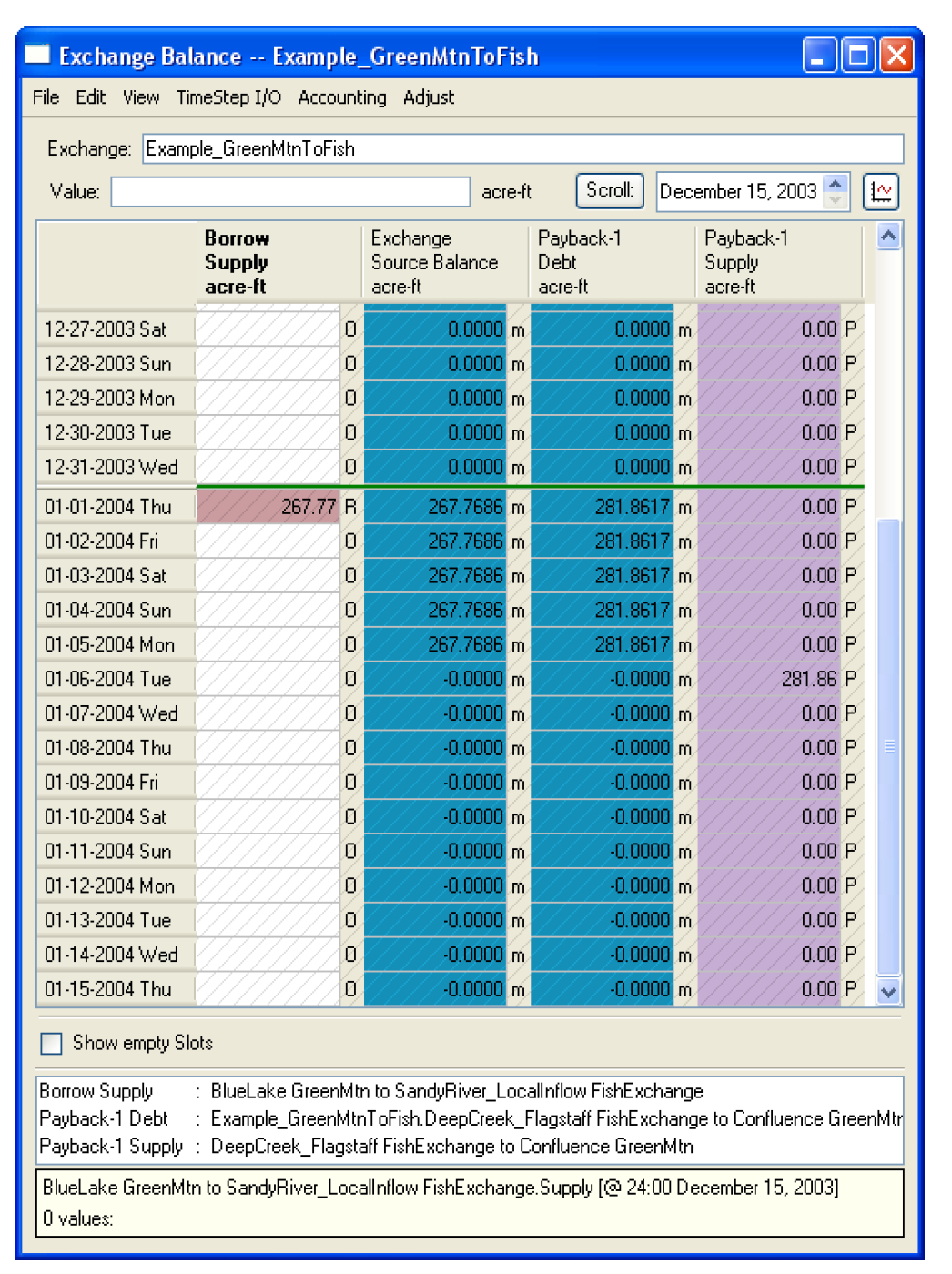 The Accounting system's Exchange Balance dialog was ported to Qt, providing the general capabilities of the new Open Series Slot dialog for Accounting Slots. A screenshot of the new dialog is shown below. Now the Payback Supply series are also shown as a column on the dialog. The column labels have been generalized and a key has been added to the bottom of the dialog. As a result, there are no long supply names in the column labels. Otherwise, the dialog has the same functionality plus the added functionality that exists in the new implementation of the Qt slots, including better column width management and an information area on the bottom of the dialog.