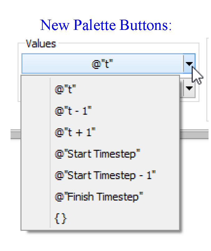• A new “Values” button group was added to the palette to support insertion of common values and Flag Values.