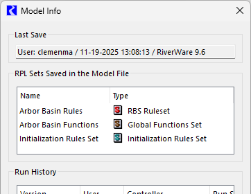 The Model Info window was enhanced to display the RPL sets that are saved in the model file. This includes the following sets if they are saved in the model: