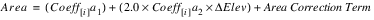The area correction term is calculated within this function based on the elevation increment size and the coefficient values.