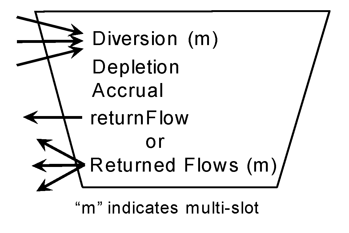 Figure 2.3 shows the general slots on the Diversion account. The arrows leading into and out of the account represent supplies. The “m” indicates the slot is a multi-slot, which can be linked to more than one other slot, as represented by the multiple arrows.