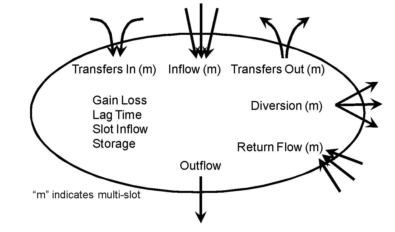 | Reach | Inflow Slot Inflow | Outflow Diversion | Gain Loss Return Flow | Lag Time Temp Available for Appropriation |