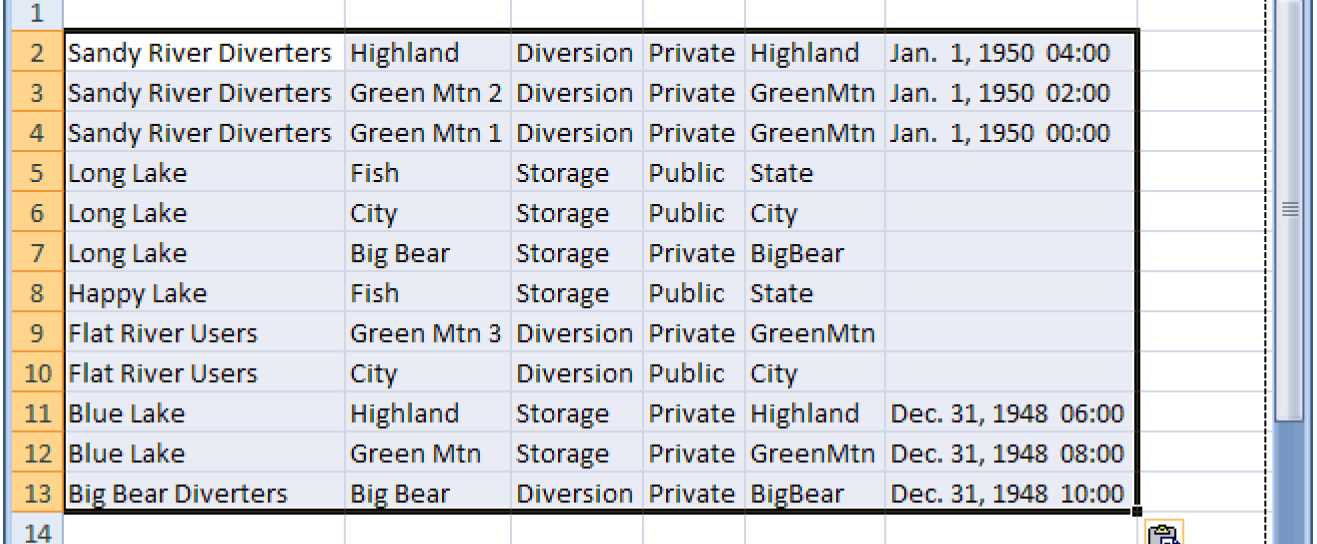 The Water Accounts Manager dialog displays some or all of the accounts in the model. It is an alternative way to access accounts in the model for purposes of viewing and configuring.
