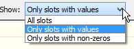 The Show menu allows you to specify whether to show All Slots, Only Slots with values (non NaNs) or Only slots with non-zero values.