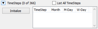 Select the Initialize button to activate the timesteps. This populates the table with the timesteps, as in .