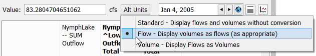 If appropriate, values in the summary area can be switched from Flow to Volume using the Alt Unit button options as shown and described in Viewing Account Data.