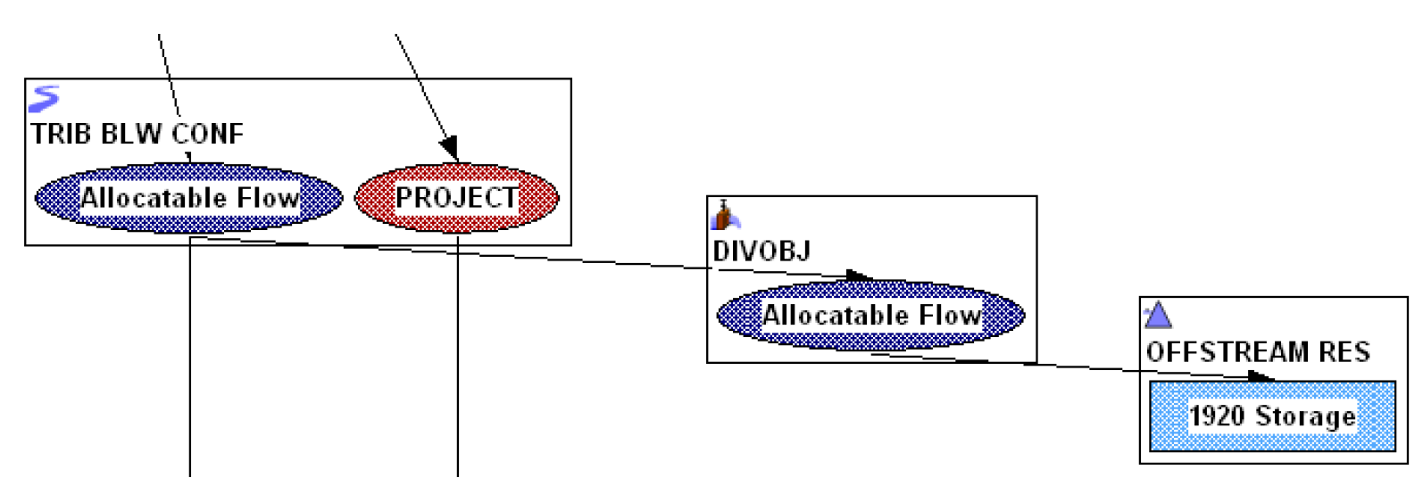 Figure 6.3  Allocatable Flow supply chain diverted to a diversion object, then to the off-stream reservoir