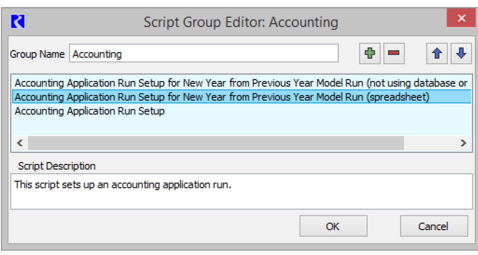 Note: In this screenshot, the “Operations” group is the default group for this model. There are three other groups as well listed in the Other Groups section the internal “All Scripts” group, “AOP Scripts” group, and “Accounting Scripts” group.
