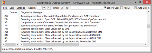 Figure 1.28 Screenshot of the diagnostic output window showing script execution diagnostics.