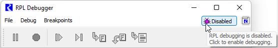 A new button has also been added to the RPL Debugger to enable/disable debugging.