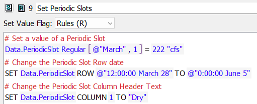 • Set Column Headers: A new SET <slot expression> COLUMN <column expression> TO <new column value expression> can set column headers for periodic slots with numeric columns or column labels on any periodic or table slot.