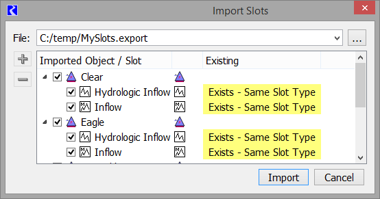 Figure 1.12 Screenshot of Import Slots Utility with Existing slots