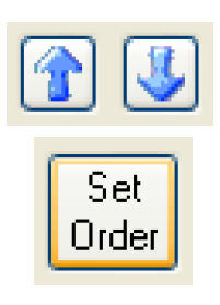 These buttons are only available for the Custom sort order. When using any of the other sort orders (Name, Type, Position) the Set Order button is displayed and active. This button sets the currently displayed order as the new Custom order, switches the sort menu to Custom, and enables the Up and Down arrows. A warning message dialog is presented to alert the user that the custom order will be overwritten. This functionality allows the user to first sort by one of the common approaches, save the order as custom, then make detailed changes using the Up and Down arrows. Any further changes to the Custom order are saved automatically.