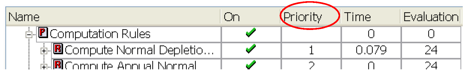 • Evaluations. The number of times this item was executed during the most recent model run.