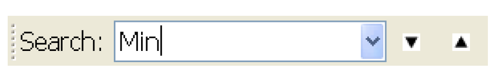 A search is initiated by pressing the Find Next button. By pressing the arrow to the right of the button, the user can select an ascending or descending order. The button will honor the last search order.