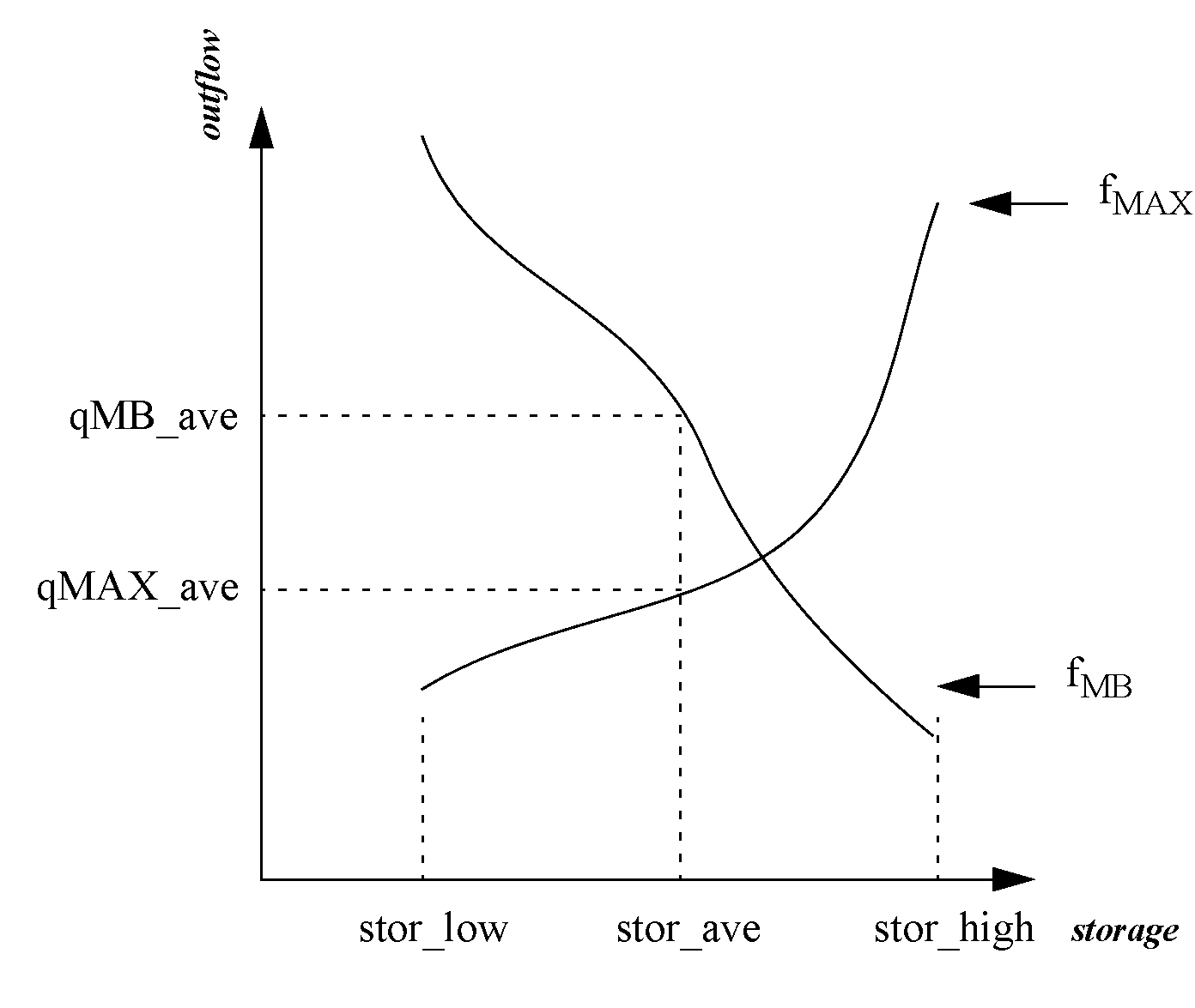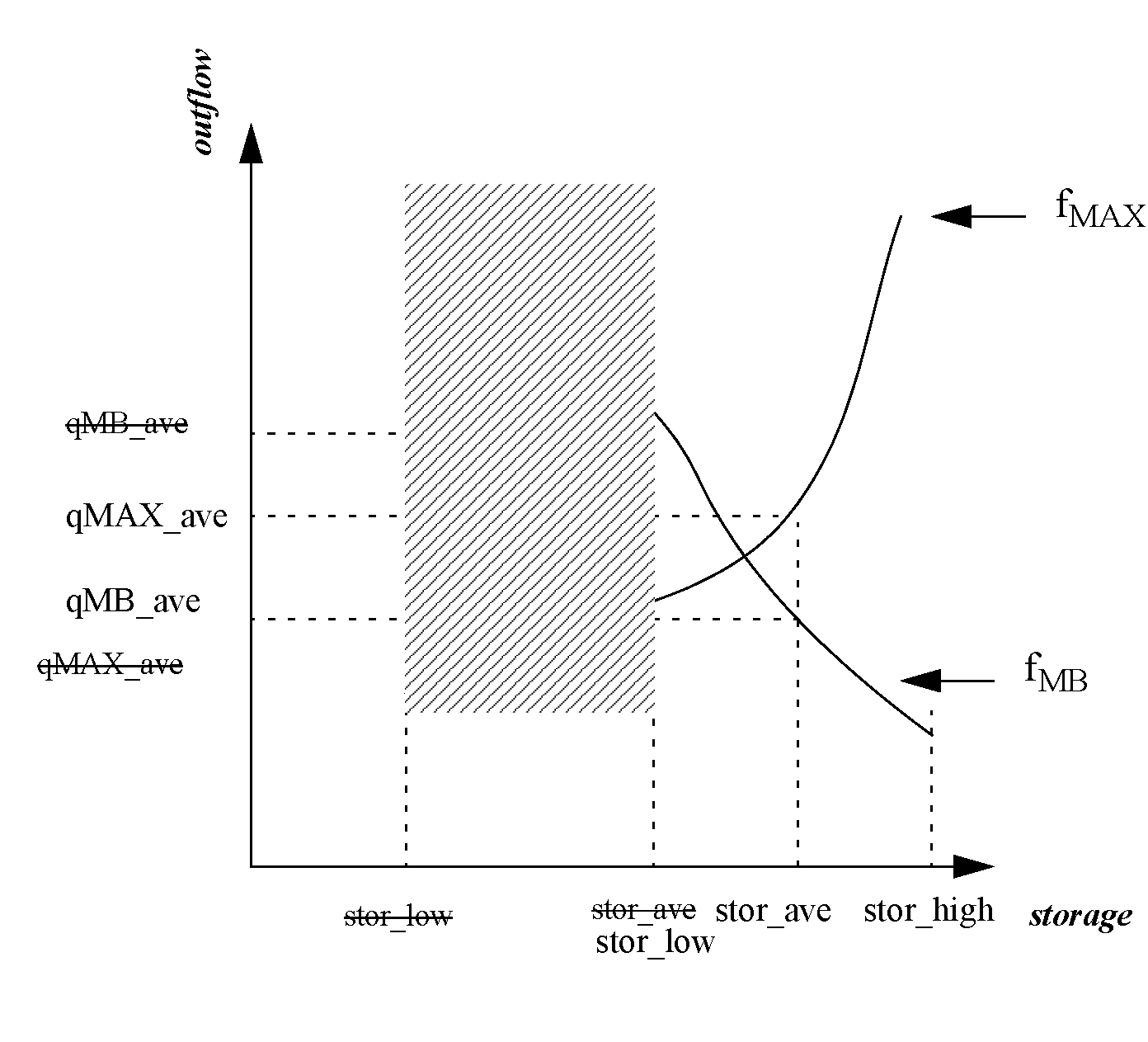 • qMAX_low = the outflow corresponding to stor_low determined by the max outflow function