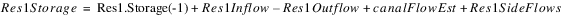 If Res1.Outflow is not flagged max capacity, then Res1.Storage must be input (or Res1.Pool Elevation is input and thus storage is known). Then Res1.Outflow is calculated from the mass balance: