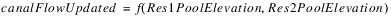 Note: The following description uses the syntax ObjVariable to indicate that these values are the intermediate values used in the calculation, not the values on the slots. If a variable is known, then ObjVariable is set equal to Object.Slot. Otherwise, it must be computed within the iterative bisection algorithm. Also, a positive canal flow represents flow from Res1 to Res2 and a negative canal flow represents flow from Res2 to Res1.