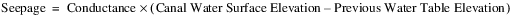 Information: Seepage is computed based on the difference between the current canal water surface elevation and the previous water table elevation