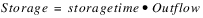 where storagetime is the time of storage in hours, coefficient and exponent are user input constants in the slots above, and meanfl is the average interior flow of the previous timestep.