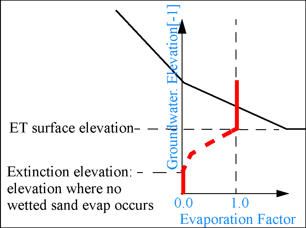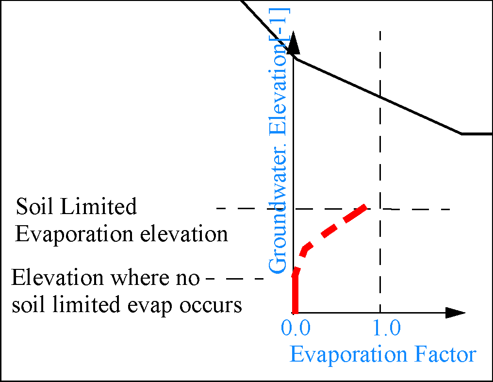 Description: This table relates the groundwater elevation with a factor that is used to compute the fraction of soil limited evaporation that occurs at that elevation.