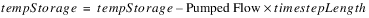 2. A tempStorage local variable is set equal to the previous timestep Storage. This is updated at each step by the inflows and outflows to track the running mass balance.