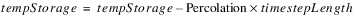 Set the Percolation slot, but limit it to the amount of water remaining in tempStorage. Do not allow storage to become (more) negative.