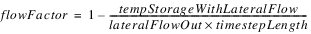 11. Incorporate Lateral Outflows: A preliminary storage value is calculated after incorporating all negative lateral flows (lateral outflows). If that value is negative and the Flow Factor U/D/R/L slots are linked, a Flow Factor is calculated that will result in a storage of 0. If the tempStorage before applying the lateral outflows was already negative, then the Flow Factor will be zero. The Flow Factor will propagate across the link to be applied to the corresponding lateral inflow on the linked groundwater object. If the resulting preliminary storage is non-negative, then the Flow Factor is assumed to be 1.0, but the slot value is not set. If the Flow Factor U/D/R/L slots are not linked, they will not get used, and thus any negative preliminary storage will remain as the final storage.