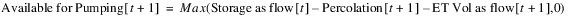 The Groundwater Pumping method is then executed to compute Available For Pumping at the current timestep based on the previous Storage and the current Outflow and Percolation.