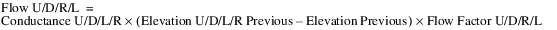 Note:  For the remainder of this section, the term U/D//R/L is used to represent a slot or variable for any or all of the combinations of the four directions, for example Flow U/D/R/L to represent Flow Upstream, Flow Downstream, Flow Right and Flow Left. The set of directions that are actually used depends on the method selected in the Lateral Link Direction category.