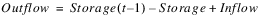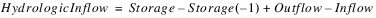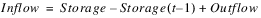 The mass balance equation used to solve for Storage is as follows: