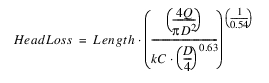 Rearranging the Hazen-Williams formula, head loss can be solved as follows: