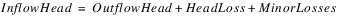 In this method, either Inflow Head or Outflow Head must be given (either set as an input, by rules, or set through a link) to calculate the other. If Inflow Head is input or set through a link, Outflow Head is calculated. If Outflow Head is input or set through a link, Inflow Head is calculated.