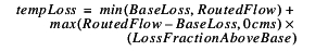 On a reach, the Total GainLoss slot is used by other GainLoss methods. As a result, this method follows the same convention where a negative Total GainLoss represents a loss. Also, the flow used by the method is the flow in the reach after the routing has occurred. Thus, the Total GainLoss is the base loss plus the fractional loss associated with the flow above the base. Because the flow could be less than the base, the following formula is necessary to calculate the loss: