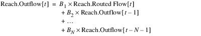 Where B1 through BN are the coefficients in the Autoregressive Flow Coefficients slot. If the Routed Flow or Outflow is not valid, an error will be issued. At the beginning of the run, some prerun Outflows may need to be input for the Routing method to compute the first Routed Flow. If previous outflows are not available, but the timestep is within the first few timesteps of the run (defined as number of autoregressive coefficients plus offset/lag determined by the Routing method), the outflow will be set to the Routed Flow.