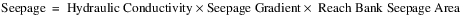 Each Reach may have horizontal seepage to multiple drains or to shallow groundwater aquifers with unique drainage characteristics. Horizontal seepage to individual drains is calculated using Darcy’s Law, as follows: