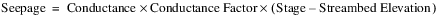 Note:  The preceding equations use the water table elevation at the previous timestep. This simplification is done to avoid iteration problems that would result if the current groundwater elevation was used. A positive seepage is limited to be less than or equal to the Inflow to the reach.