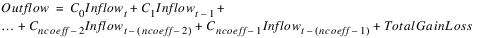 In the following, Inflow refers to the sum of the Inflow and Local Inflow slot. The variable ncoeff is the number of rows in the Variable Lag Coefficients slot. The outflows will be calculated using the following algorithm: