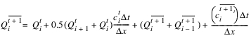 The algorithm uses is a predictor corrector scheme that is unstable for a Courant number greater than unity. The advantage of this scheme is that it is second order accurate and can minimize numerical diffusion. The general equations for this method are as follows.