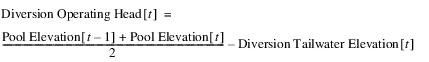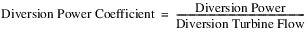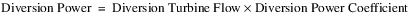 Otherwise, Diversion Power is calculated by a 3‑D interpolation on the Diversion Power Table using Diversion Operating Head and Diversion Turbine Flow, and Diversion Power Coefficient is calculated as follows:
