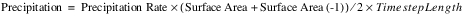 The volume of Precipitation that occurred over the timestep is then calculated using the following equation: