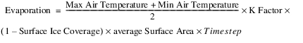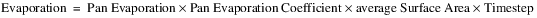 If Evaporation is not specified, the following equation is used to compute the volume of water that evaporated from the Reservoir over the timestep: