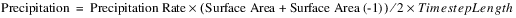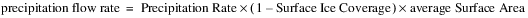 The precipitation flow rate over the timestep is calculated as shown in the following equation: