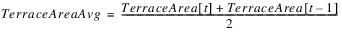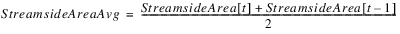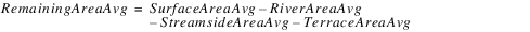 The method will be passed in a current estimate of Surface Area and Average Surface Area. The latter is an average of the current estimate and previous timestep’s value. In this description, it is called SurfaceAreaAvg. Similarly, StreamsideAreaAvg, RiverAreaAvg, TerraceAreaAvg and RemainingAreaAvg are all averages of the current and previous values.