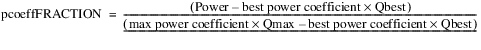 8. If neither 3) nor 4) is true, an interpolated value (pcoeffINTERP) is found between the best and max power coefficients based on how close Power is to both the product of Qbest and the best power coefficient, and the product of Qmax and the max power coefficient. The following pair of equations is used to quantitatively determine the pcoeffINTERP value: