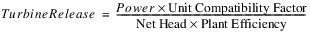 2. Once efficiency, Plant Cap Fraction, Net Head, and Turbine Release are all known, Power is solved for using the Power Equation. The unit compatibility factor comes from balancing units and is 102.01697767 in internal RiverWare units.