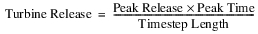 This method first checks to see if Turbine Release is user input or set by a rule. If it is, the run terminates because both Energy and Turbine Release cannot be input. When the Energy value is known, the Peak Power Equation with Off Peak Spill Release method uses Energy to solve for Turbine Release, Peak Release and Peak Time as follows.